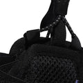 - The reinforced back panel is equipped with soft padding and perforated fabric.