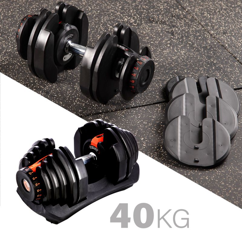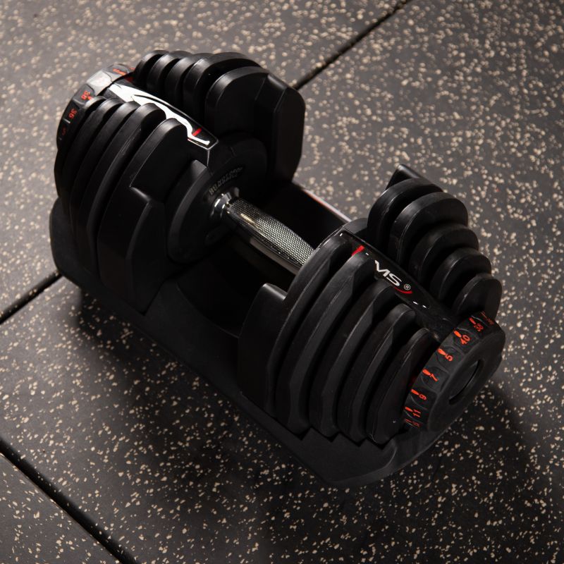 SR80 HMS is an adjustable bar. The set includes a neck, 17 plates and a stand. The device is ideal for people exercising at home, but it will also work well in the training room, replacing the entire rack of traditional dumbbells.