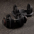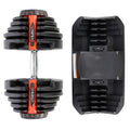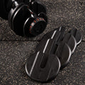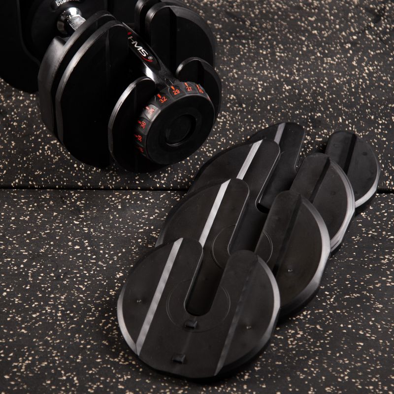 The use of an innovative plate mounting system allows a very quick and easy change of load during training. Unlike traditional dumbbells, removing and putting on plates does not require unscrewing the clamps and putting on and removing plates. On the SR80, simply put the bar on the stand and use the two knobs to set the desired load. After lifting the bar again, there will be plates corresponding to the chosen setting.