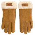 Women's UGG Turn Cuff Gloves made of suede - sheep leather are a guarantee of quality, comfort and adequate thermal comfort. The interior is lined with natural sheepskin, which is soft and pleasant, and also very warm. The gloves are waterproof and have external seams. The whole thing is decorated with fur with a brand patch