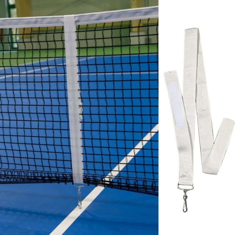 The Netex adjustable center tennis strap is a practical accessory used to maintain the correct height of the net during play.