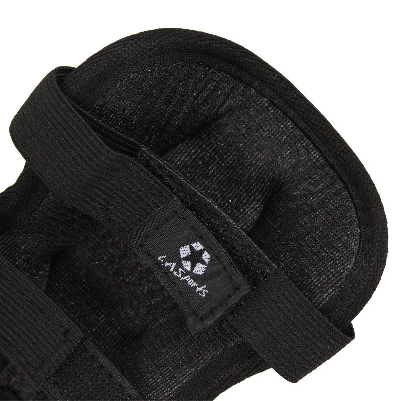 A set of JUNIOR protectors provides protection for these body parts without restricting movement. The knee and elbow pads are attached with elastic Velcro straps, and the wrist pads are fastened with two non-stretchable Velcro straps. Protectors do not move while riding and fit perfectly to the figure. The whole is packed in a practical mesh bag.