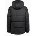 - Detachable hood with fleece lining and a high stand-up collar.