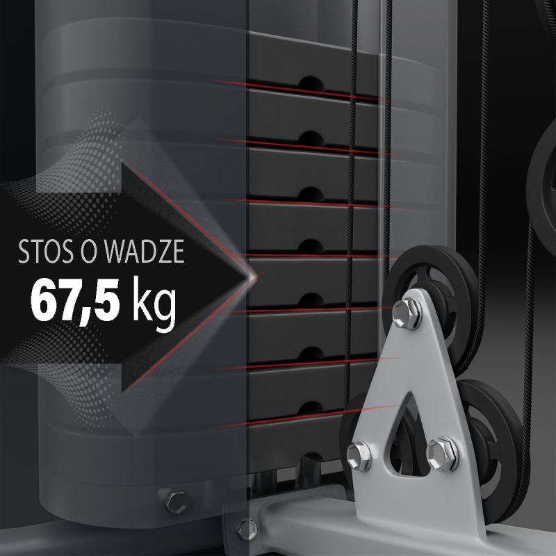 Titan 7 allows you to safely exercise different muscle groups - just like in a professional gym. Braided steel cable guarantees durability up to 1000kg, while the lower rod can be used as a neck or rowing machine. It is an ideal solution for women or men who want to improve their condition and figure, increase and strengthen muscle mass.