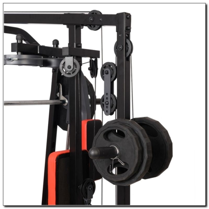 - The product has a smooth height adjustment of the barbell. Another advantage of the HMS multi-gym is the option of detaching the bench, so you can exercise in a standing position.