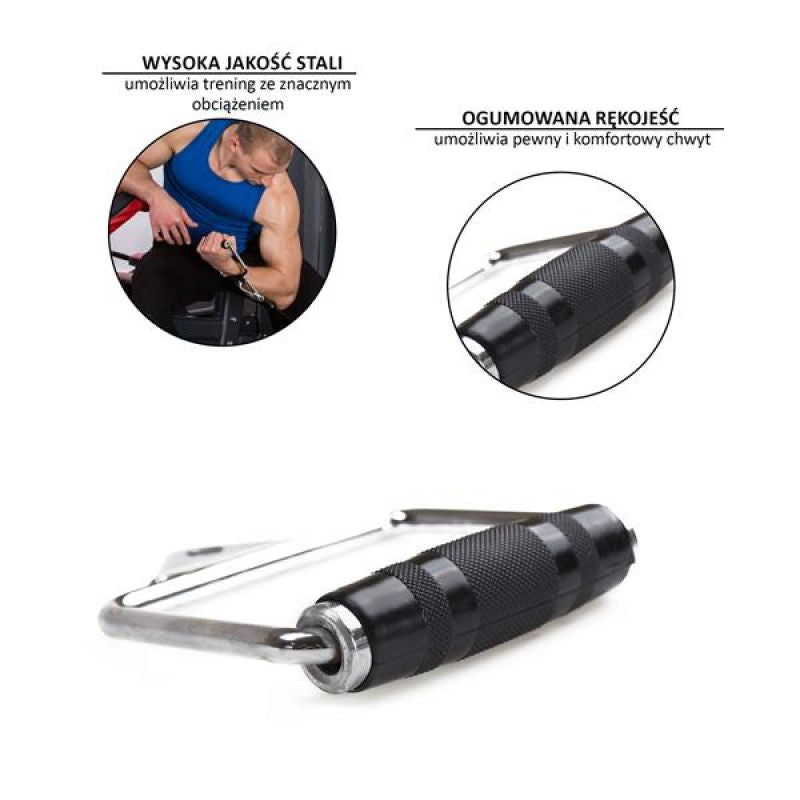 The rubberized handle allows a secure and comfortable grip. Thanks to this, we can focus on the exact performance of the exercise, without fear that the handle may slip out of our hands. Made of high quality steel gives you the option of training with a significant load. The handle is also rotatable, which increases the range of motion.