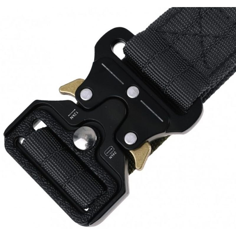 - The belt has a metal Cobra buckle. The buckle mechanism prevents opening under load.