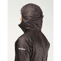 - A fitted, and adjustable back, insulated hood provides additional protection. And thanks to its compact size, this jacket fits easily into any pack and fits under any hard shell.
