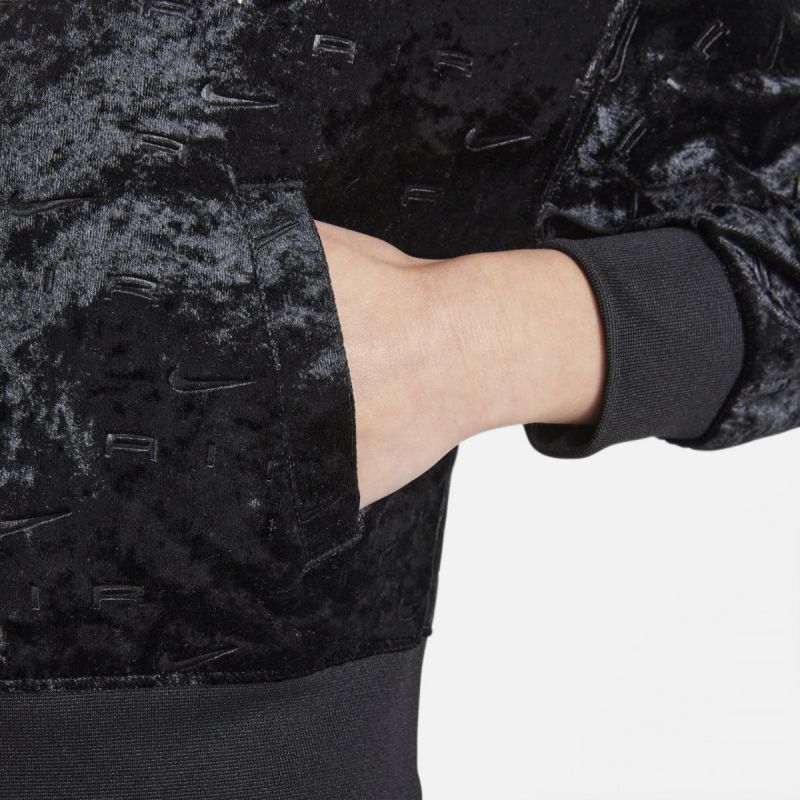 The Nike Air Jacket is a lightweight layer that's perfect for cold-weather adventures. The cut ends at the hip for easy wear with other layers, while the print on it expresses your love of Air. The velor fabric is extremely soft and silky to the touch, keeping you warm.