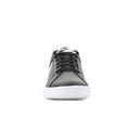 - The black lace-up upper is enriched with white accessories.