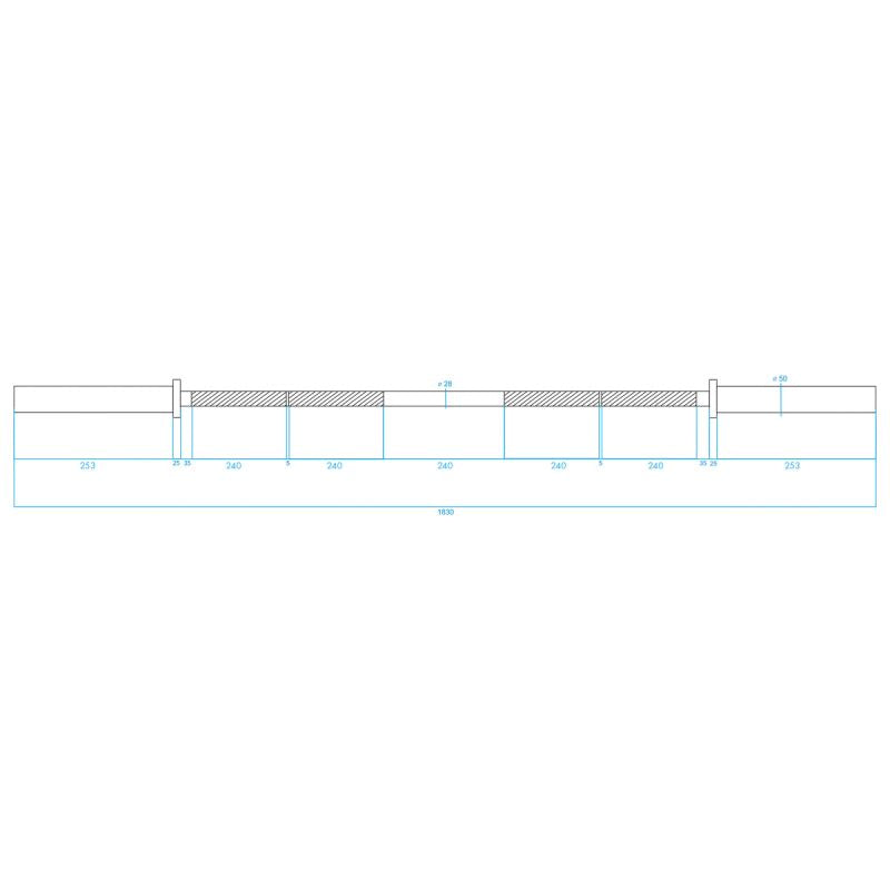 The Olympic neck GO320 HMS was made of special chromed steel, which was subjected to a hardening process. The HMS product is characterized by strength combined with perfect flexibility. The set includes two jaw clamps. A secure and comfortable grip is provided by careful knurling. The maximum load is 320 kilograms. In turn, the grip part diameter of 30 millimeters ensures high strength and comfort of exercise. The neck chrome plating process used is a guarantee of maintaining its appearance for a very long period of use and is the best protection against rust. The Olympic 700 GOMS HMS has 2 needle bearings (1 on one side) that allow the parts to rotate smoothly under load. Its design eliminates stress at the ends of the rollers, which in turn translates into greater bearing service life. Despite their small cross-section, needle bearings have high rigidity and load capacity. Two jaw clamps included in the set guarantee a stable weight position on the neck during exercise. The caps have rubber parts inside to prevent load loosening.