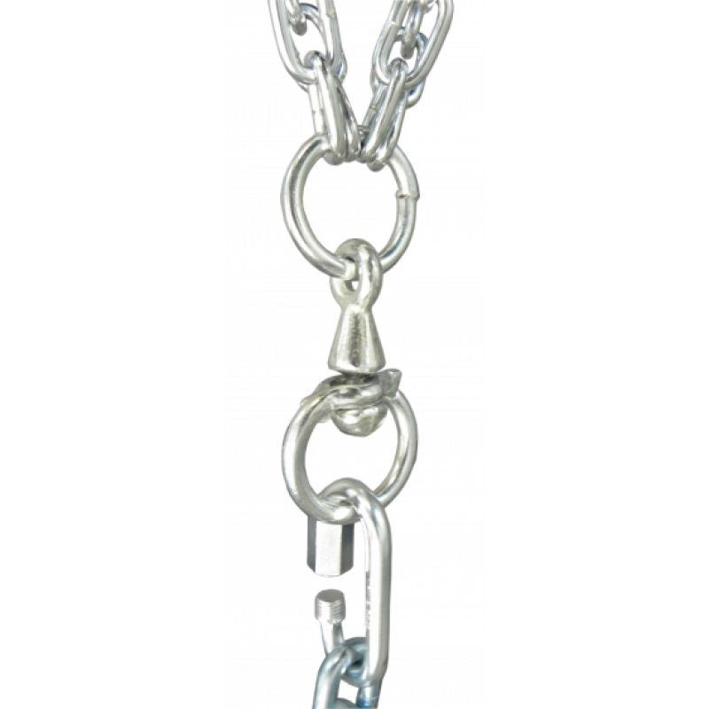 - It is hung with 4 chains connected with carabiners with triangular handles sewn to the bag. The stitching is additionally secured by a strong webbing collar sewn around the top of the bag. The chains are connected by an eyelet to which a swivel is attached. Possibility of replacing the chains thanks to the use of carabiners.