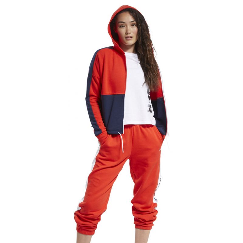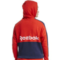 - Reebok women's sweatshirt. Model in red and navy blue with a large white logo on the back.